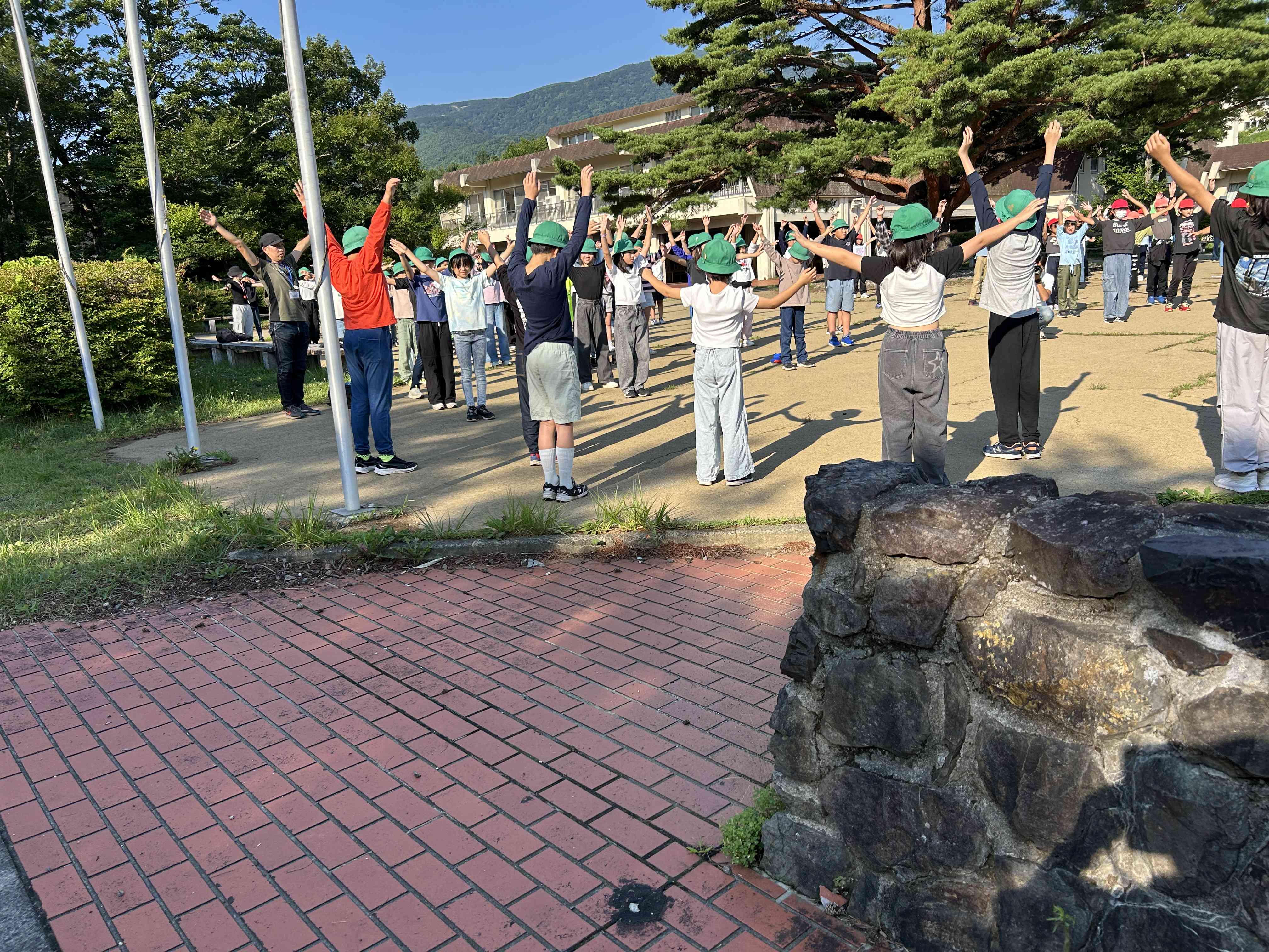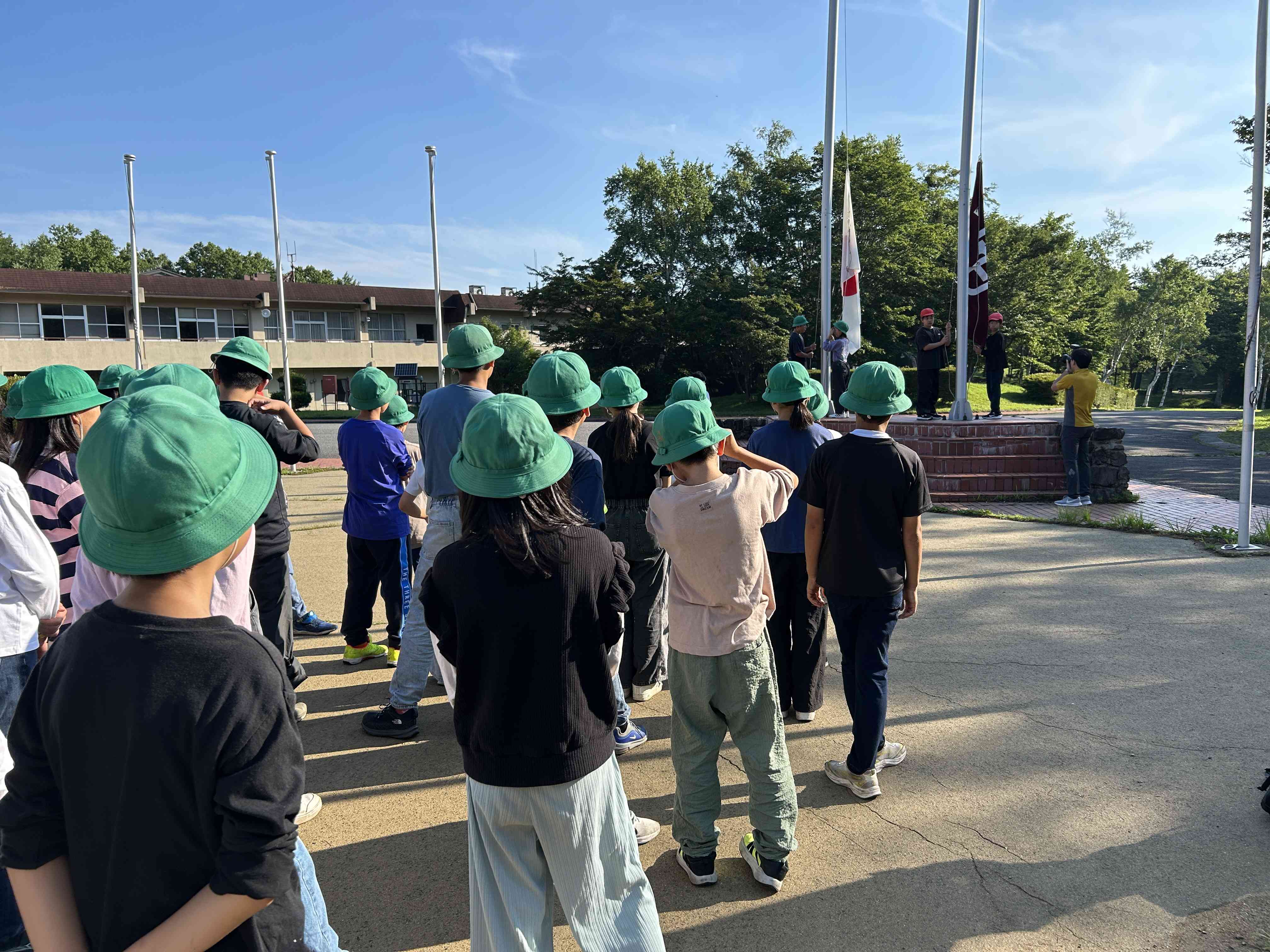 3日目、最終日の朝を迎えました。天気も良く涼しく過ごしやすいです。朝のつどいはB棟に泊まっている他の学校と一緒に行いました。朝のつどいの後は朝食です。朝から焼きたてのパンをいただきました。