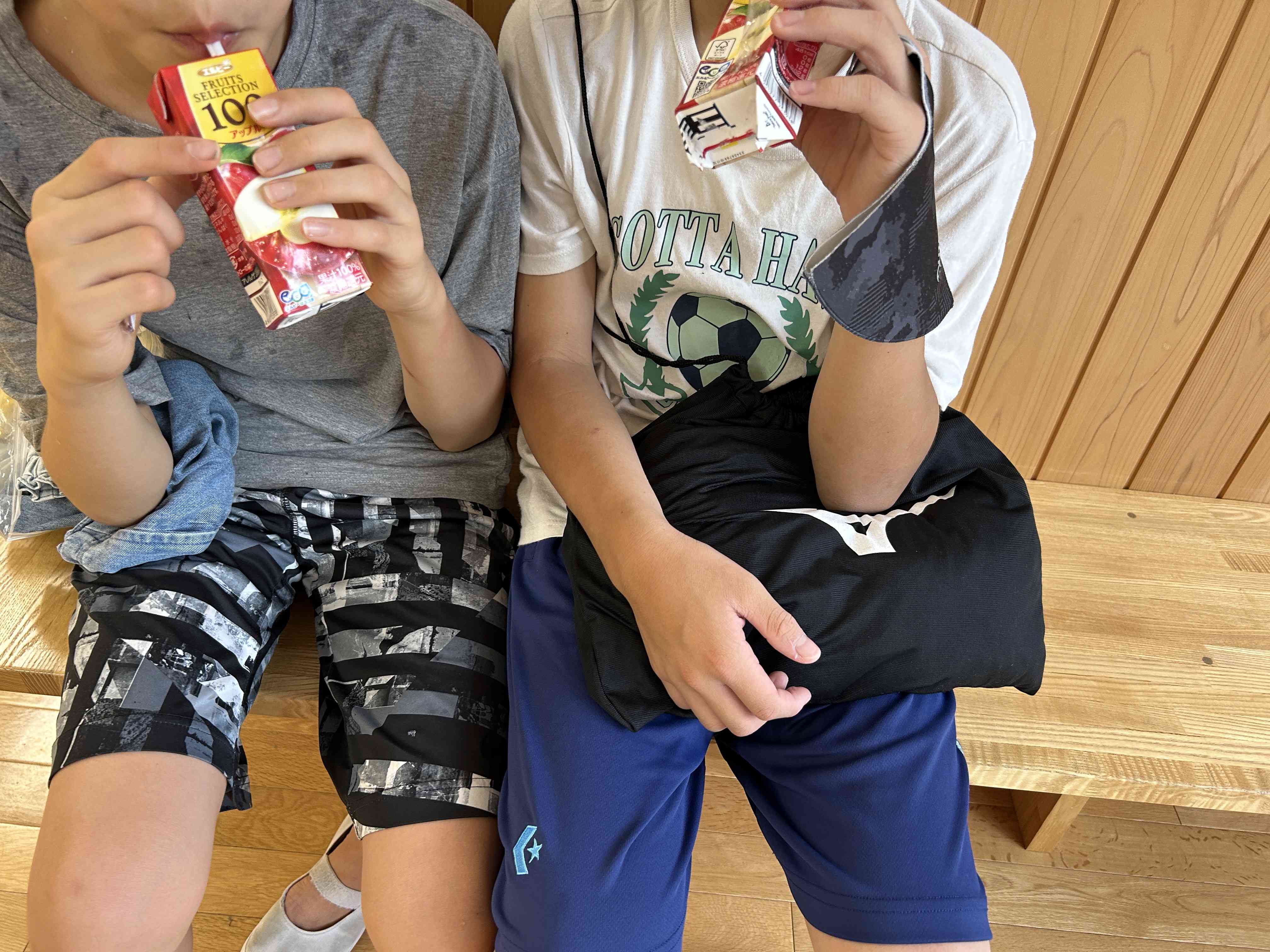お風呂のあとはりんごジュースとお部屋でゆっくり。