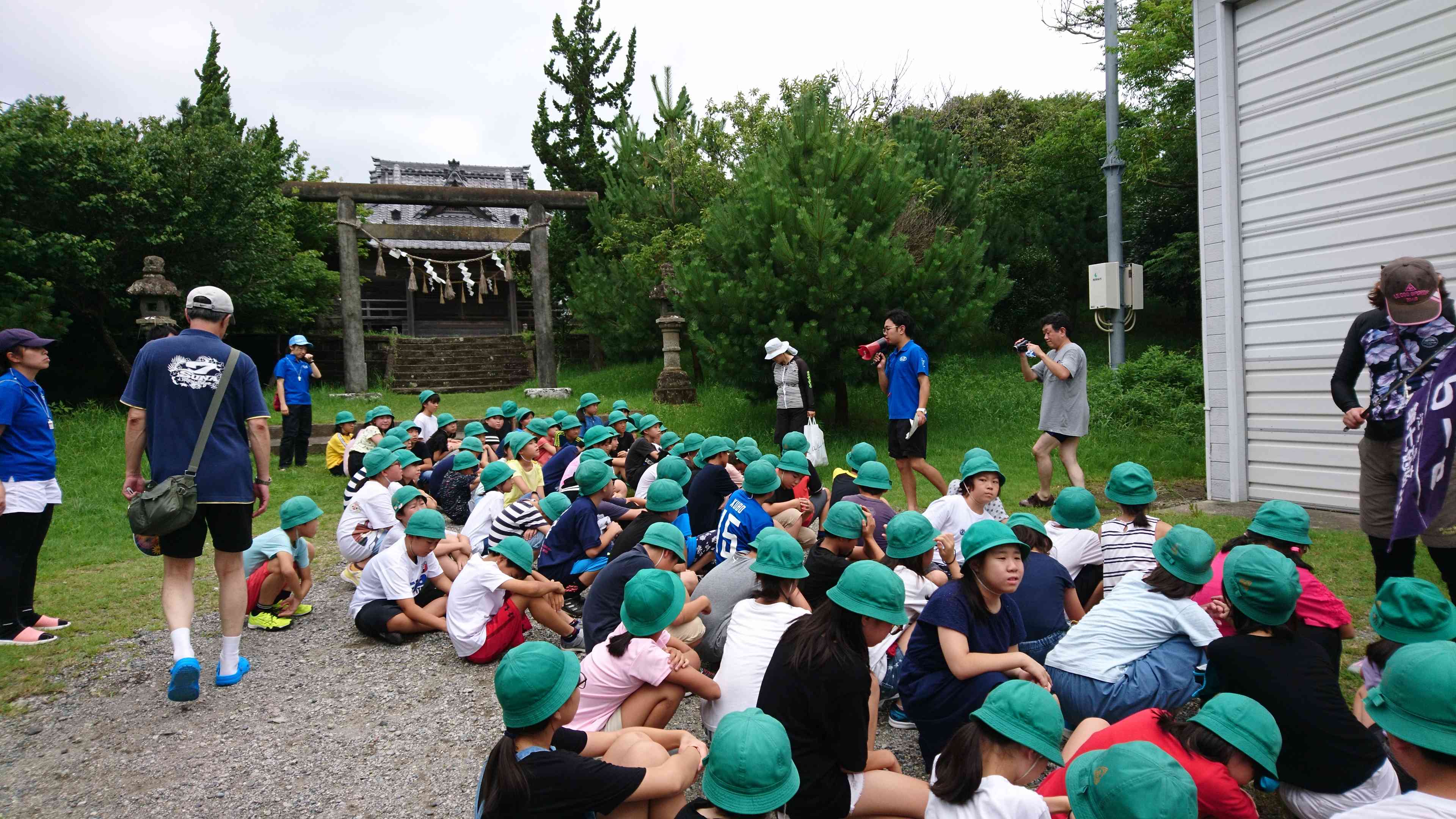 避難訓練をしました。地震を想定して、津波があった場合の避難場所も確認しました。場所は近くの神宮です。
