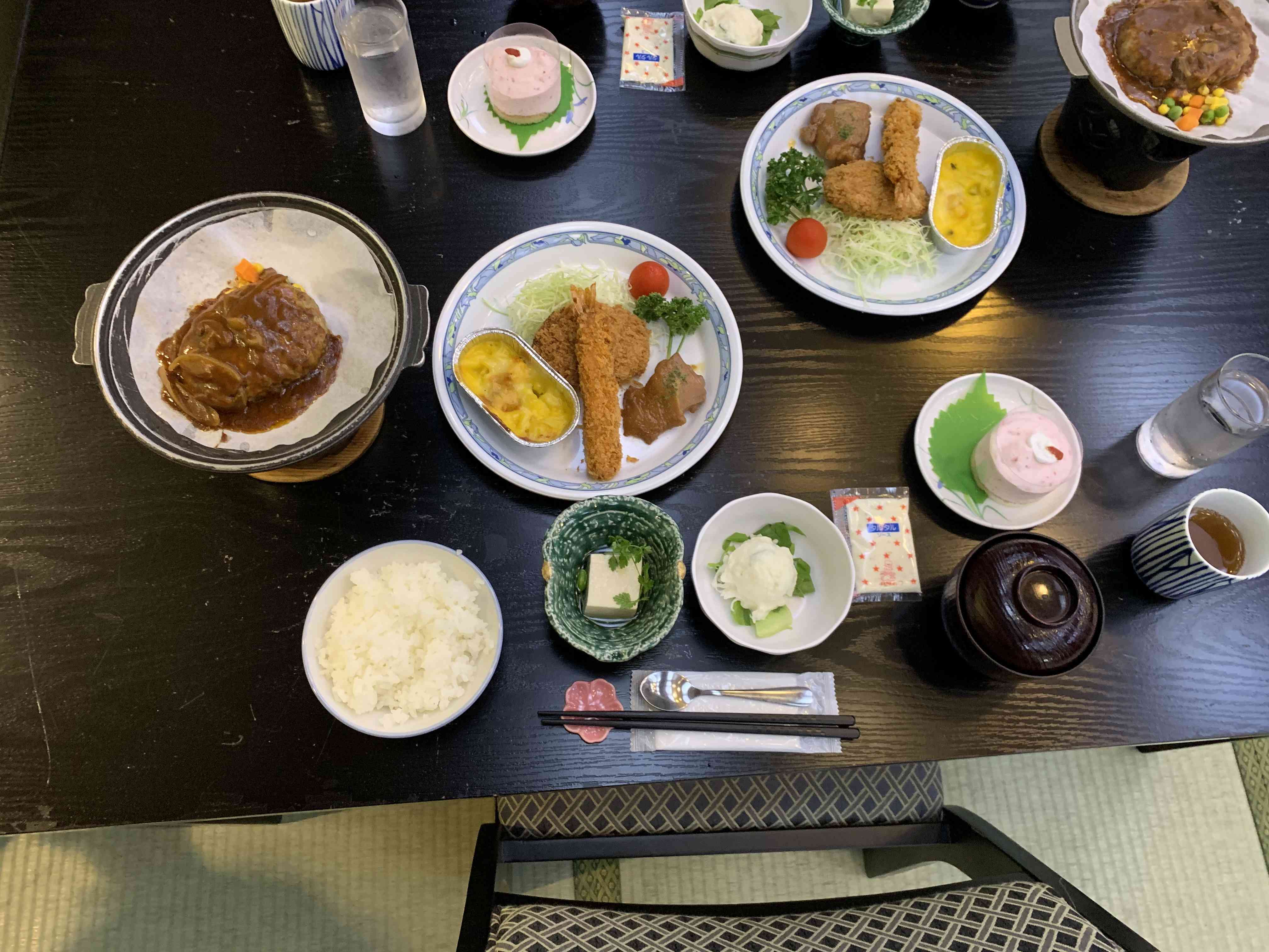 温泉に入って疲れを癒したところで、今日の夕食です。 豊富なメニューと量に子どもたちはとても喜んでいました。 この後の肝試しがとても楽しみにしている様子もみられました。