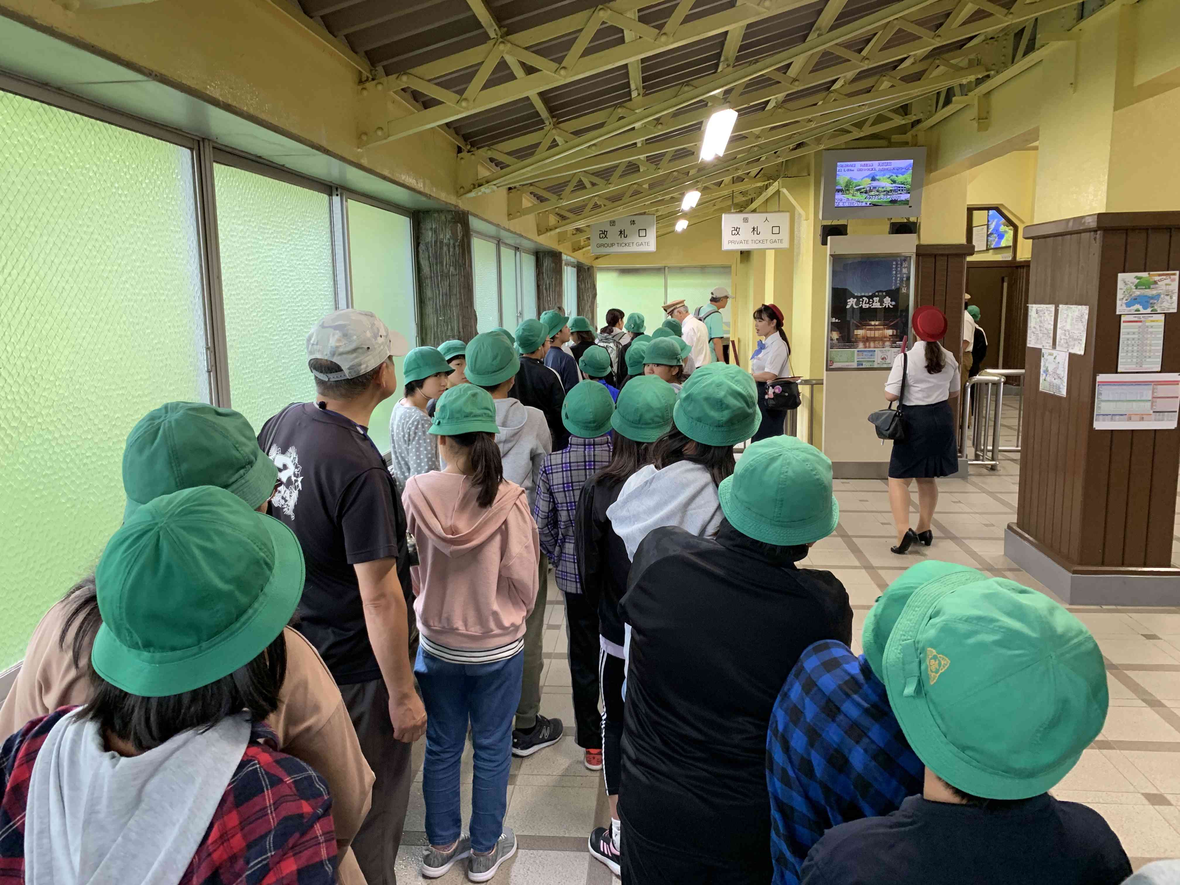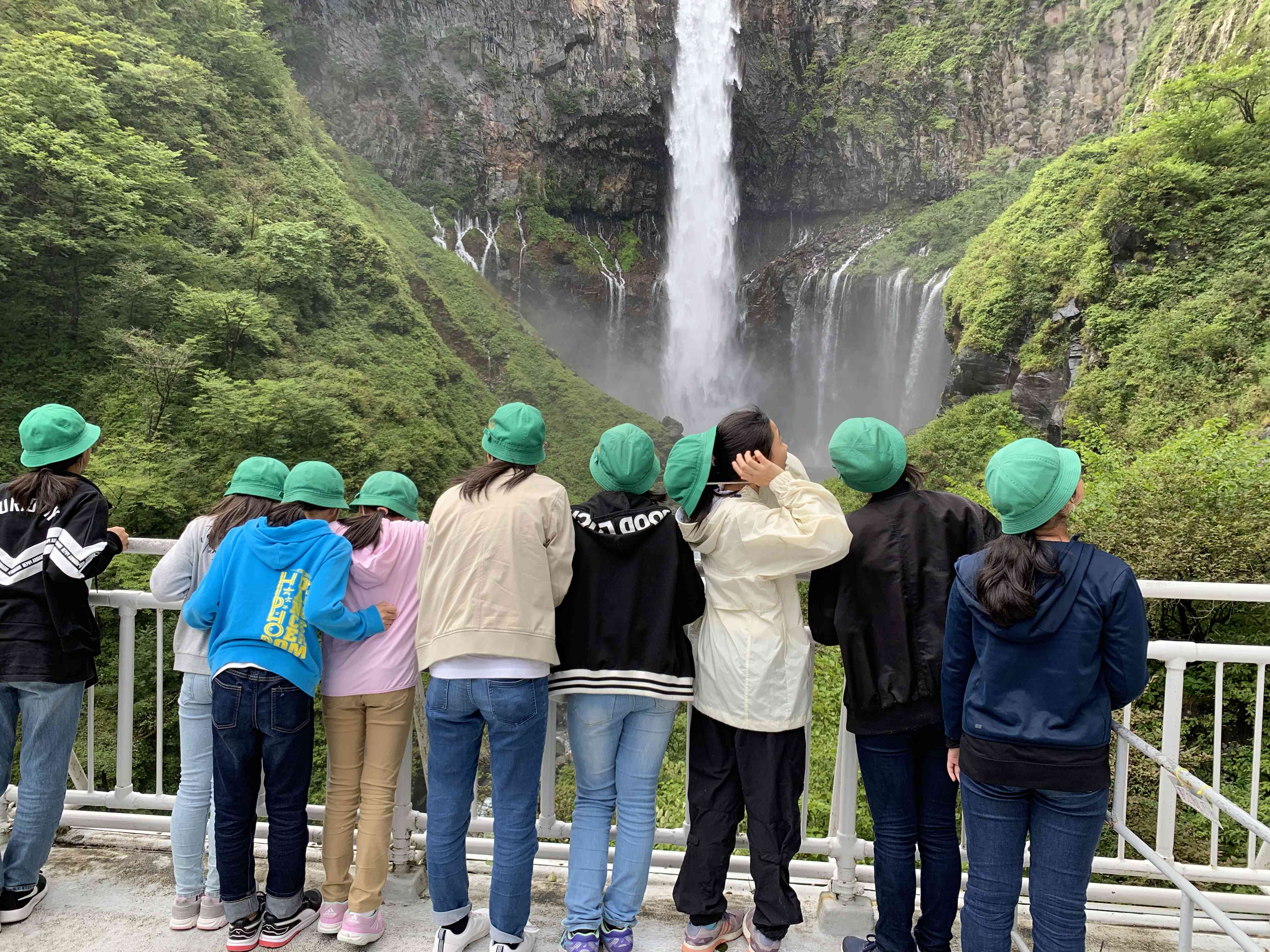 華厳の滝に来ました。台風の影響でいつもよりも勢いが強く、なかなか見られない光景に、こどもたちも興奮を隠せない様子でした。