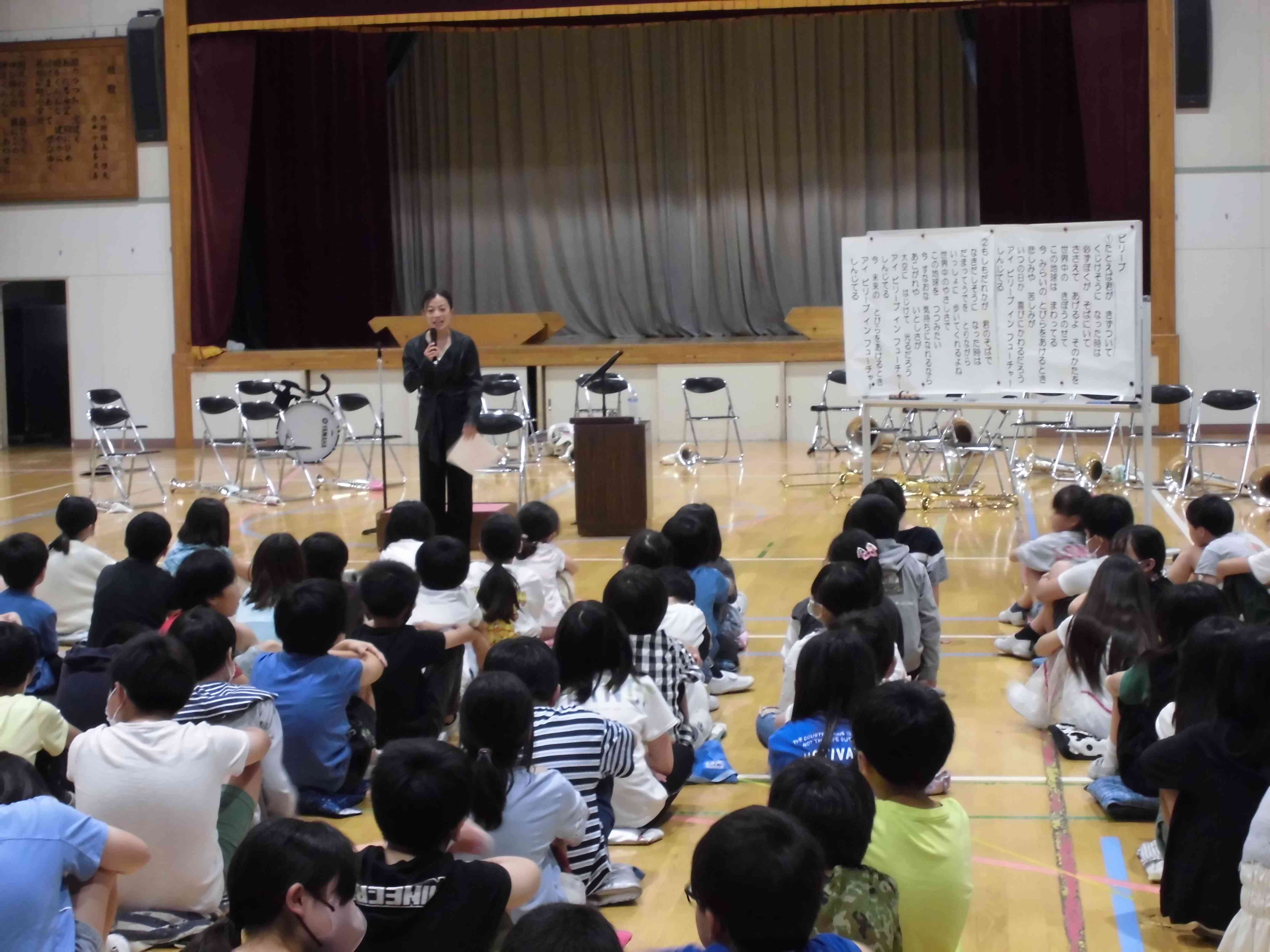 6月14日(水)本校の卒業生の三ツ橋さんが来校しました。三ツ橋さんが指揮者になるまでのお話や指揮者として気を付けていることなどをお話してくださいました。 指揮をしていただいたビリーブでは、歌声がいつも以上に素敵になりました。思い出に残る機会となりました。